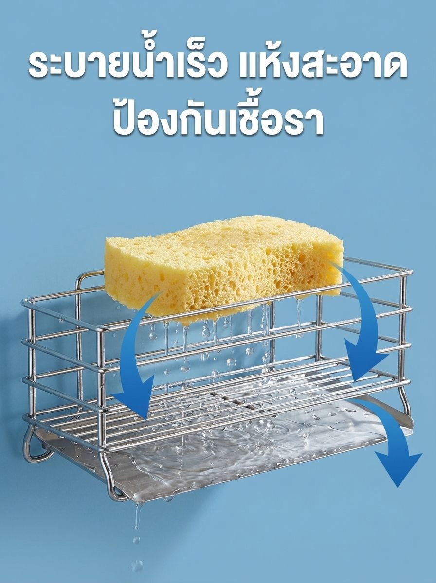 ● ที่วางฟองน้ำสแตนเลสทั้งตัวแบบกว้าง Nature Living แข็งแรง ทนทาน ไม่เป็นสนิม ใช้งานได้นานเหมาะกับทุกครัว