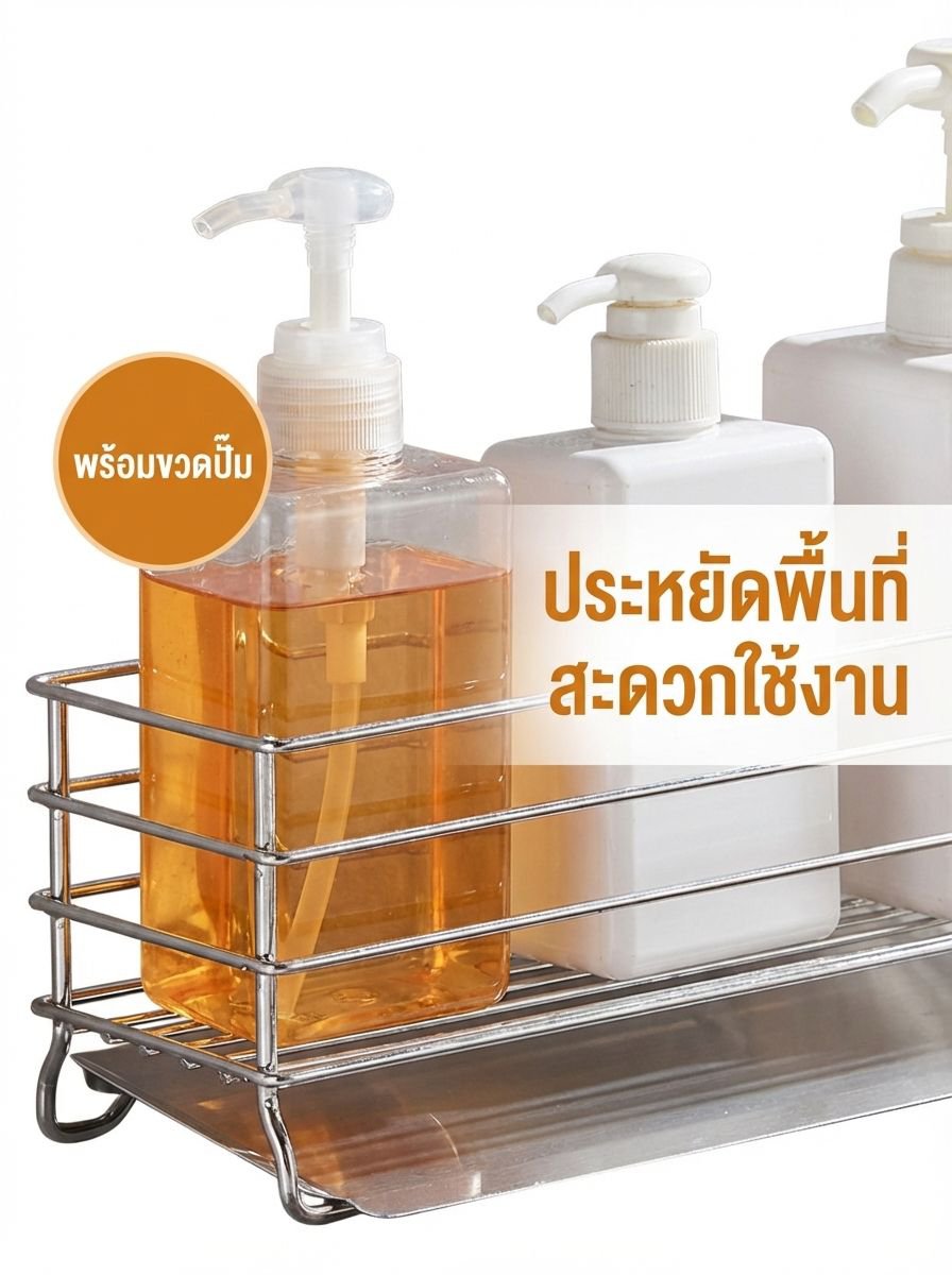 ที่วางฟองน้ำสแตนเลสทั้งตัวแบบกว้าง Nature Living + เครื่องจ่ายน้ำยาล้างจาน
