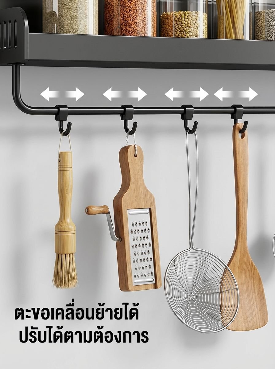 ● ชั้นวางเครื่องเทศติดผนังดีไซน์ทันสมัย ประหยัดพื้นที่และเพิ่มความเป็นระเบียบให้กับห้องครัวของคุณได้อย่างลงตัว